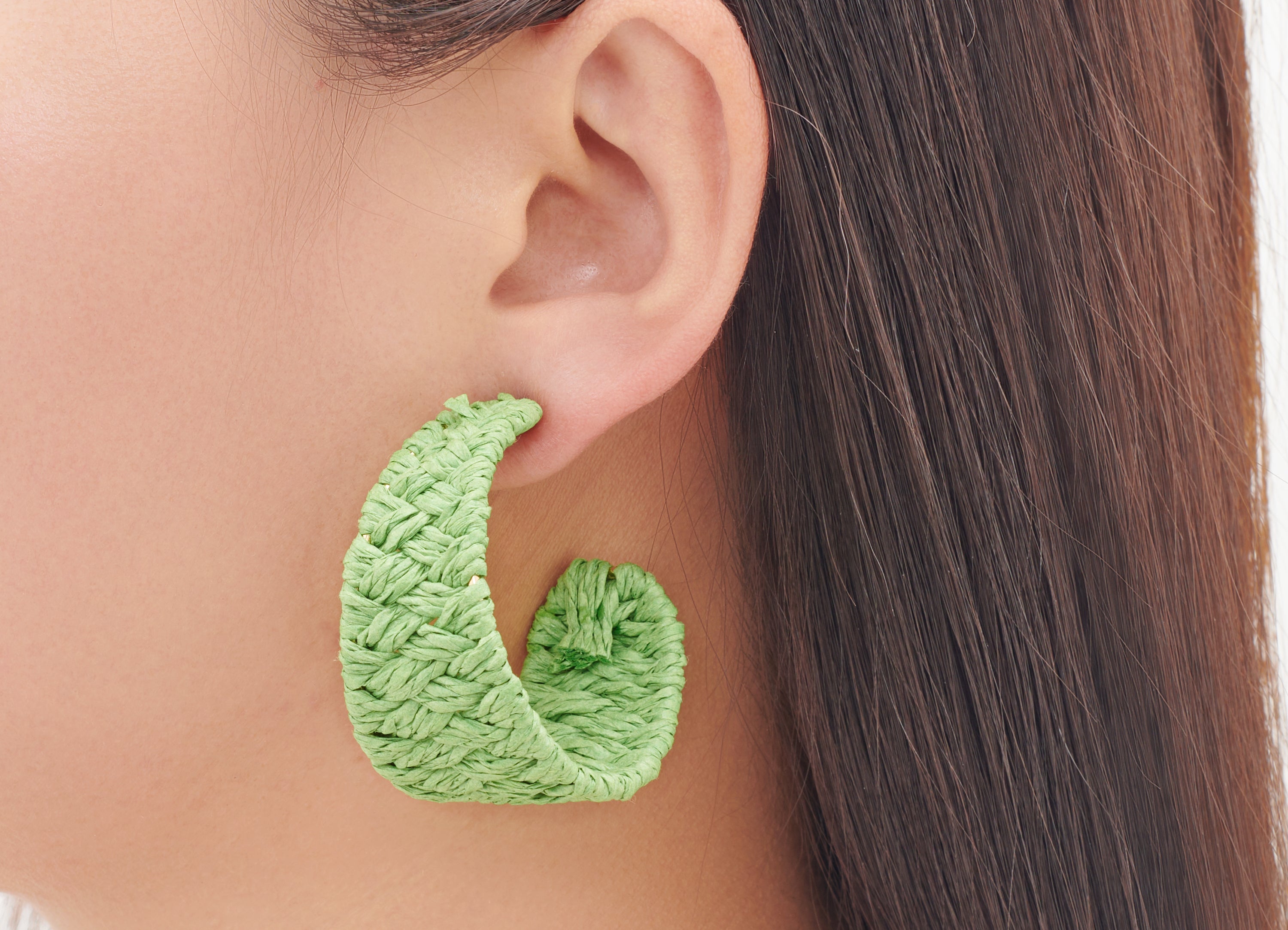 Push Back Stud Earring - Iron - Raffia Grass - Iron Stud - Green - 10.9gr - MJ103347